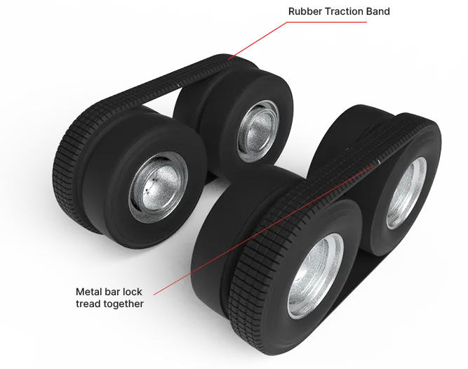 The longitudinal rows of sprocket teeth on the outer face effectively grip slippery or snow-packed surfaces, accommodating a range of adverse road conditions, including ice and deep snow.
